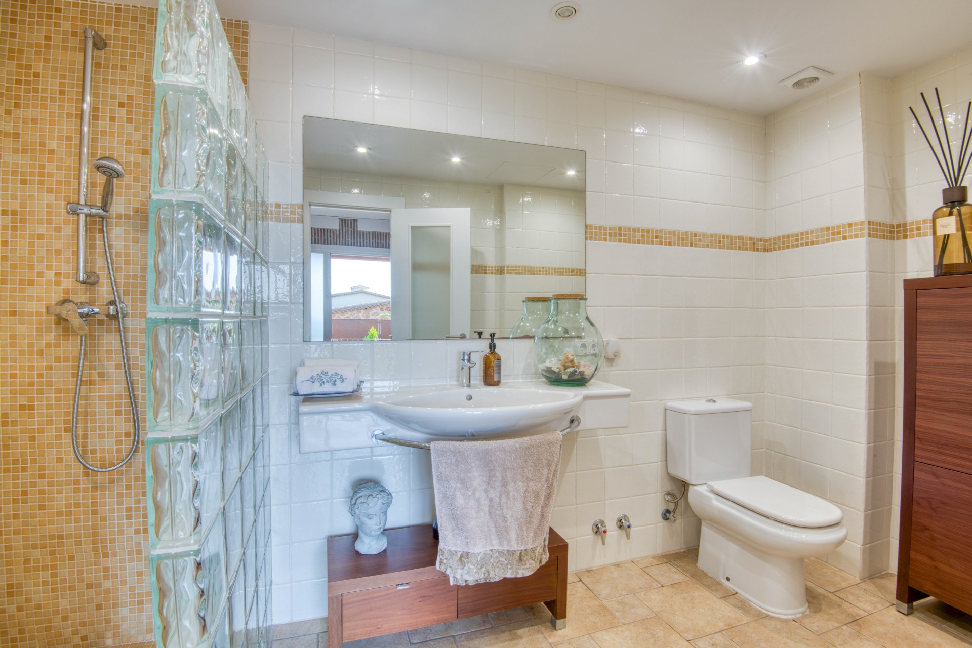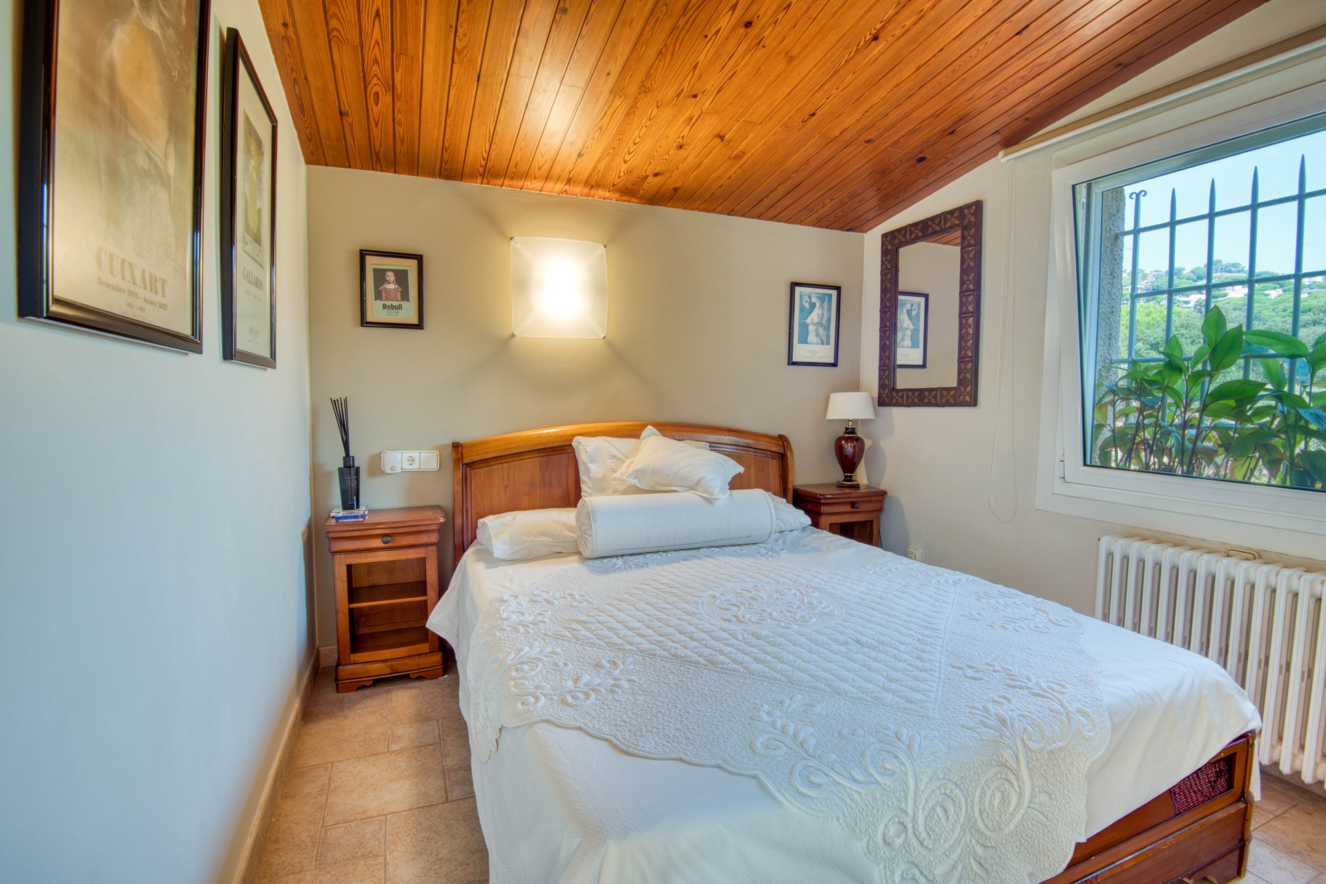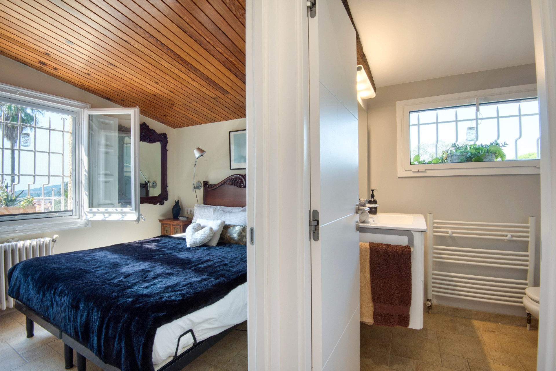 En la planta superior, dos dormitorios dobles con armarios empotrados y un baño completo acompañan a la suite principal, que destaca por su baño privado, vestidor, zona de despacho y acceso directo a una terraza con vistas panorámicas sobre Platja d’Aro.